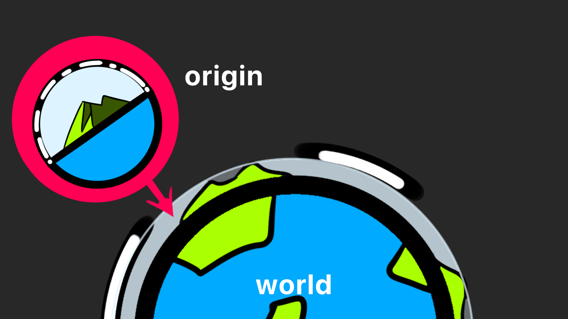 origin systemの由来は、地球平面説や天動説、つまり、古代の宇宙観です。惑星はお椀の形をしており、そこに地上が乗っているイメージ。